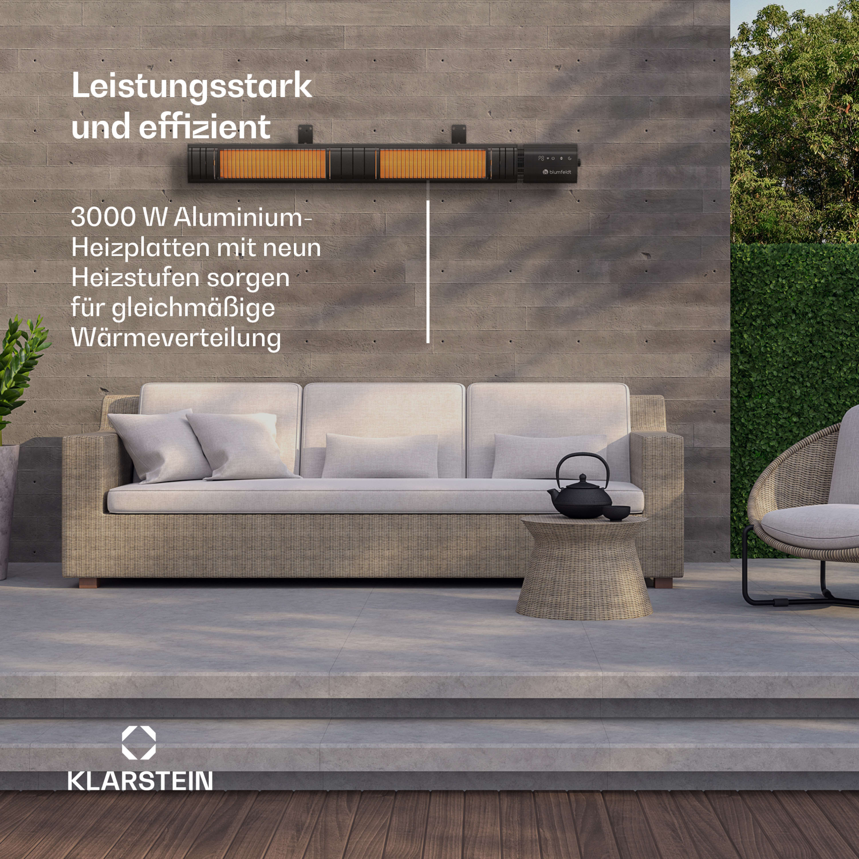 Der Blumfeldt Gold Bar Slim 3000W Heizstrahler bietet eine effektive Lösung für kühle Abende im Freien. Dieser leistungsstarke Infrarotstrahler kombiniert fortschrittliche Technologie mit benutzerfreundlichen Funktionen, um Ihnen eine angenehme Wärme zu bieten. Mit einem eleganten Design und robusten Materialien ist dieser Heizstrahler ideal für den Einsatz auf Balkon, Terrasse oder im Garten. Die Goldröhren sorgen für eine gleichmäßige Wärmeverteilung, während die 9 Heizstufen von 222W bis 3000W eine präzise Temperaturregelung ermöglichen. Dank der Smart WiFi-Funktion können Sie den Heizstrahler bequem aus der Ferne über die Blumfeldt-App steuern und das Touchpanel bietet eine einfache Bedienung am Gerät. Der Blumfeldt Gold Bar Slim 3000W Heizstrahler ist IP65-zertifiziert und somit wasserdicht, was ihn perfekt für den Außenbereich macht. Zusätzliche Sicherheitsfunktionen wie die Kindersicherung und die offene Fenstererkennung sorgen für einen sicheren Betrieb. Die Wand- und Deckenmontage ist durch die verstellbare Halterung einfach und schnell möglich. Mit dem Blumfeldt Gold Bar Slim 3000W Heizstrahler genießen Sie auch an kühlen Tagen wohlige Wärme im Freien.