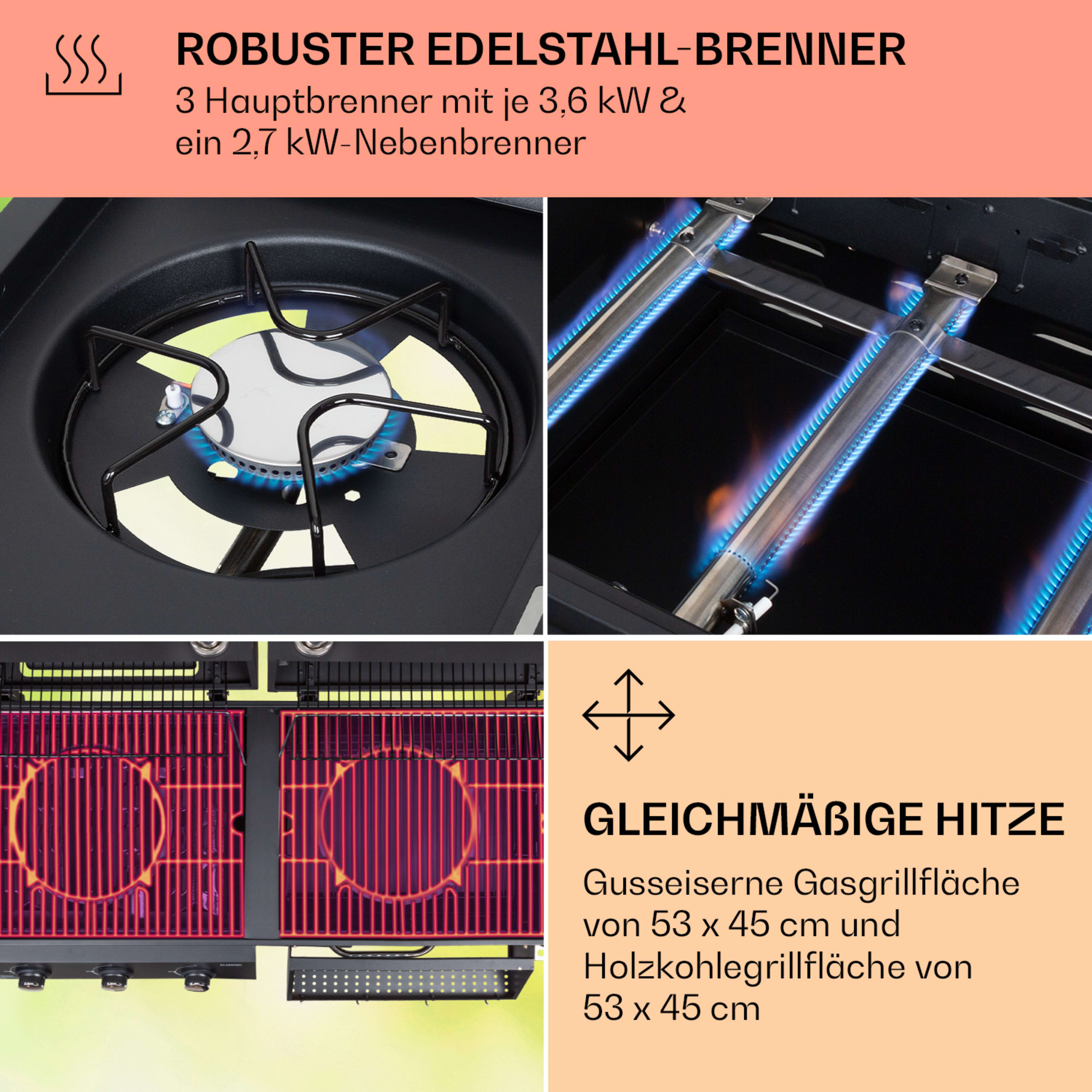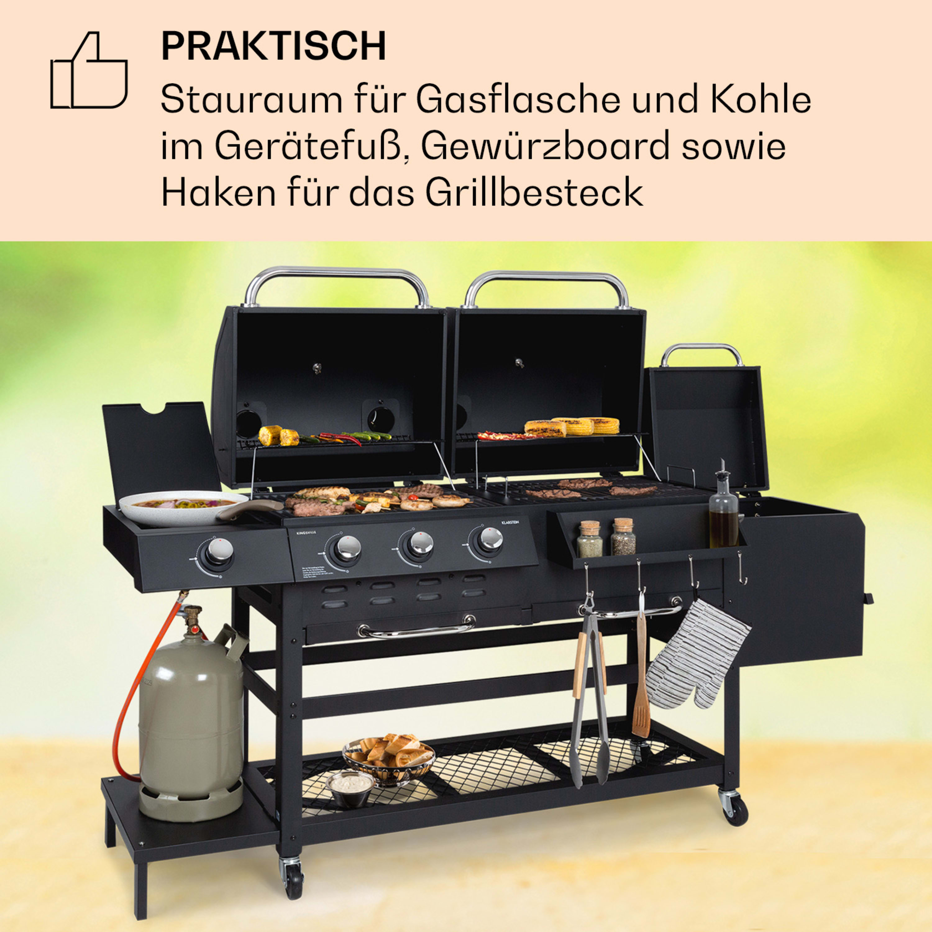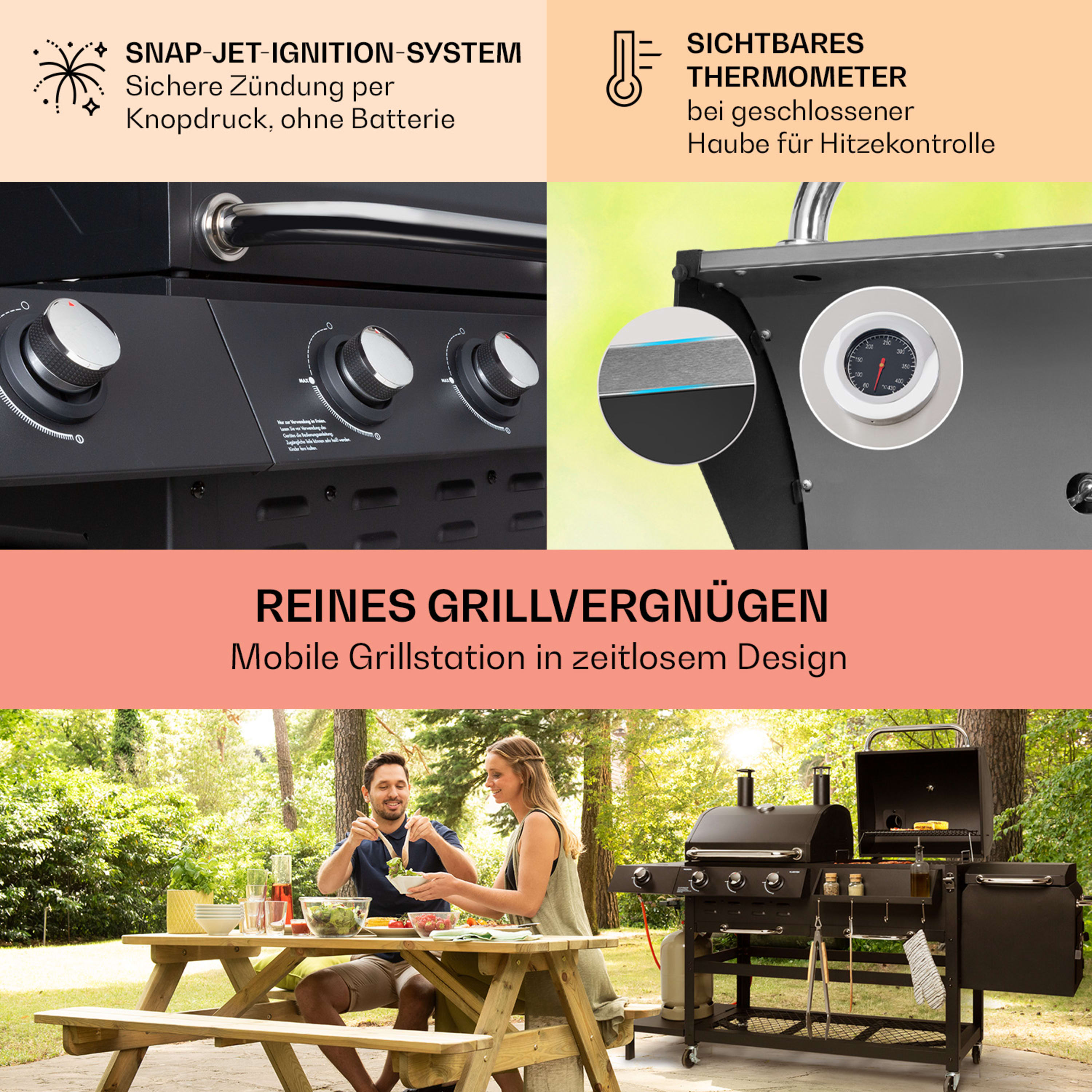 3-in-1-Grill: Kombigrill mit Gas- oder Holzkohlebefeuerung sowie Smokerbox