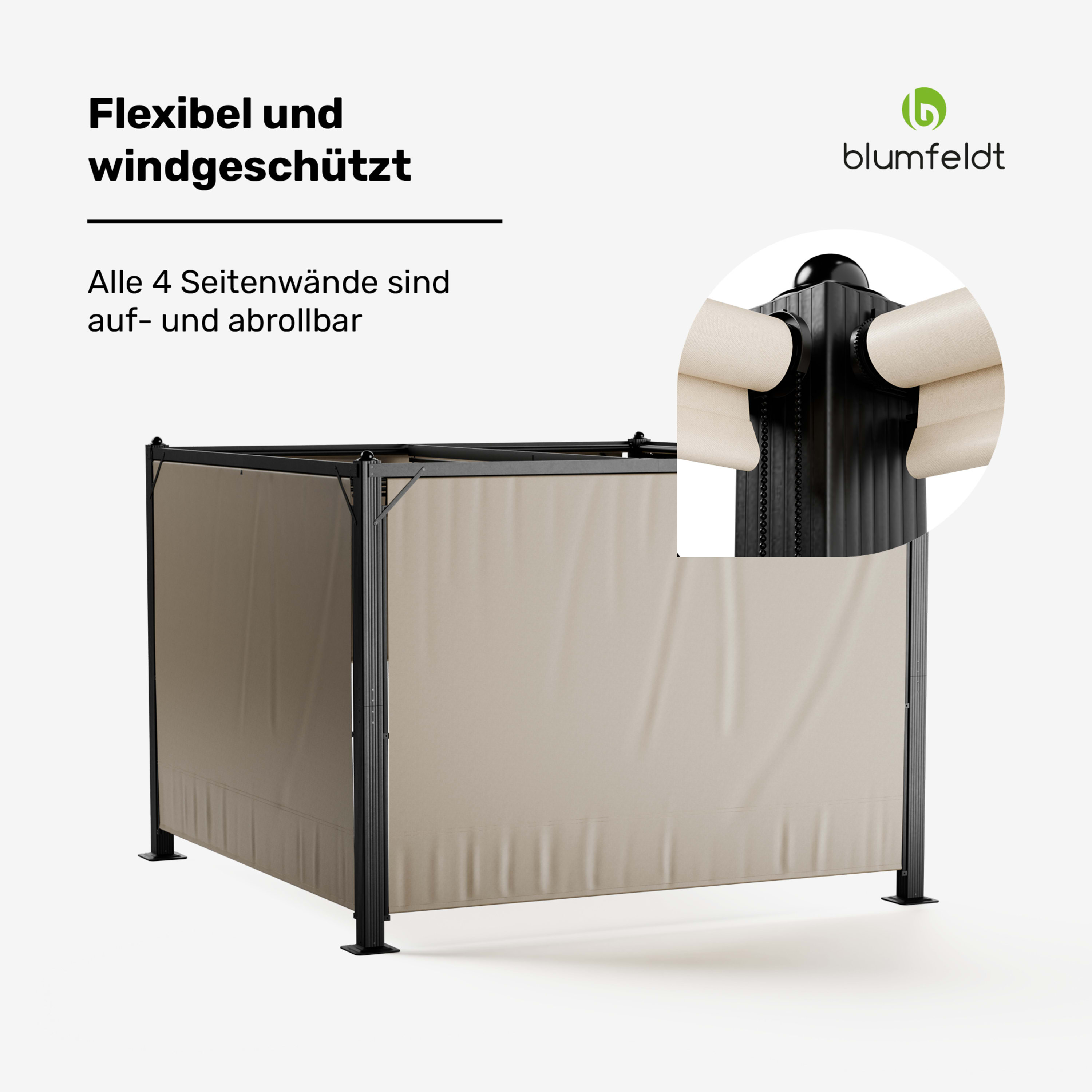 Der Blumfeldt Pantheon Cortina Pavillon macht Terrasse oder Sitzecke zum Tempel der Erholung! Der Pavillon passt durch sein elegantes Design in jedes Gartenambiente.