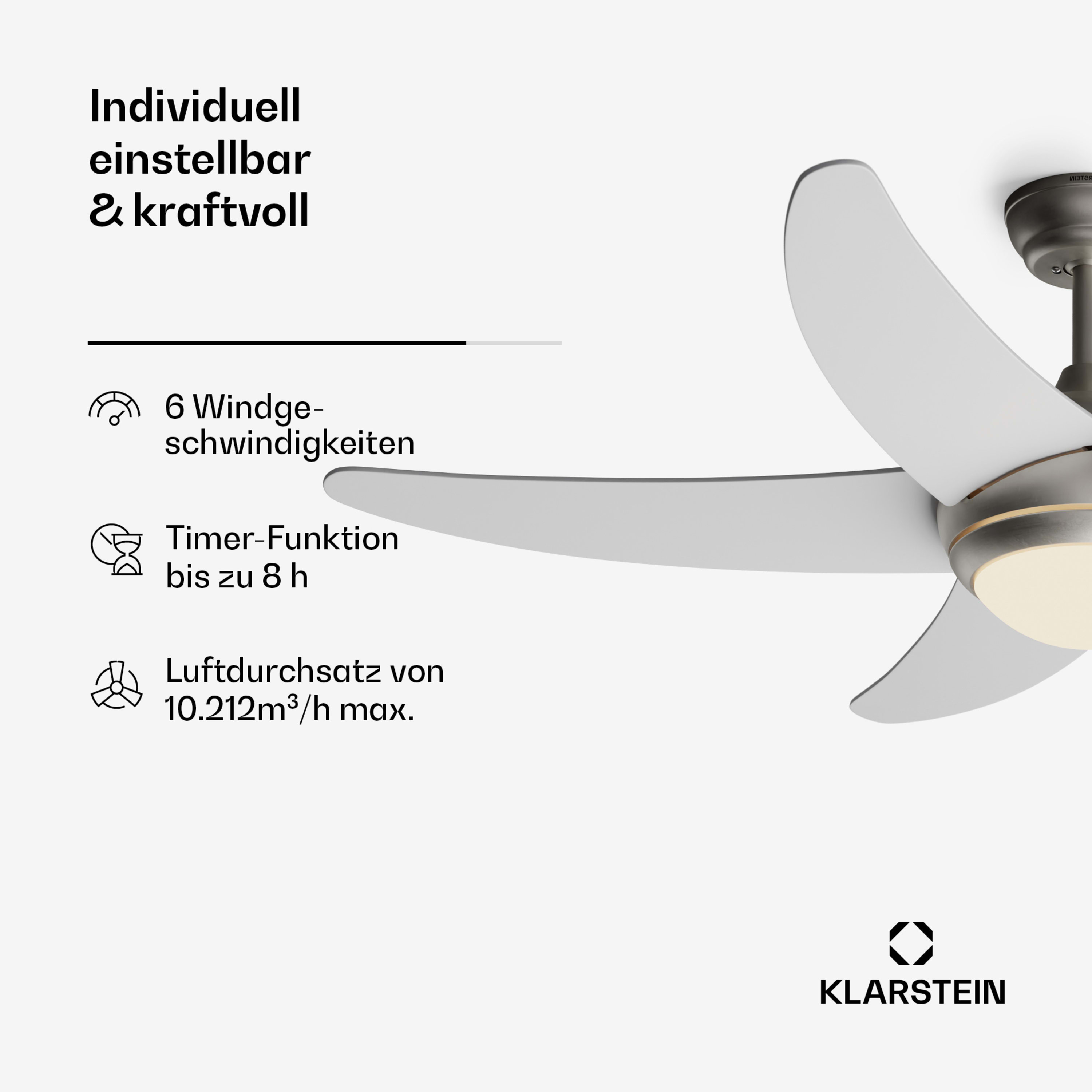 2-in-1: formschöne Lampe und Ventilator mit einem Luftdurchsatz von 10.212 m³/h max.