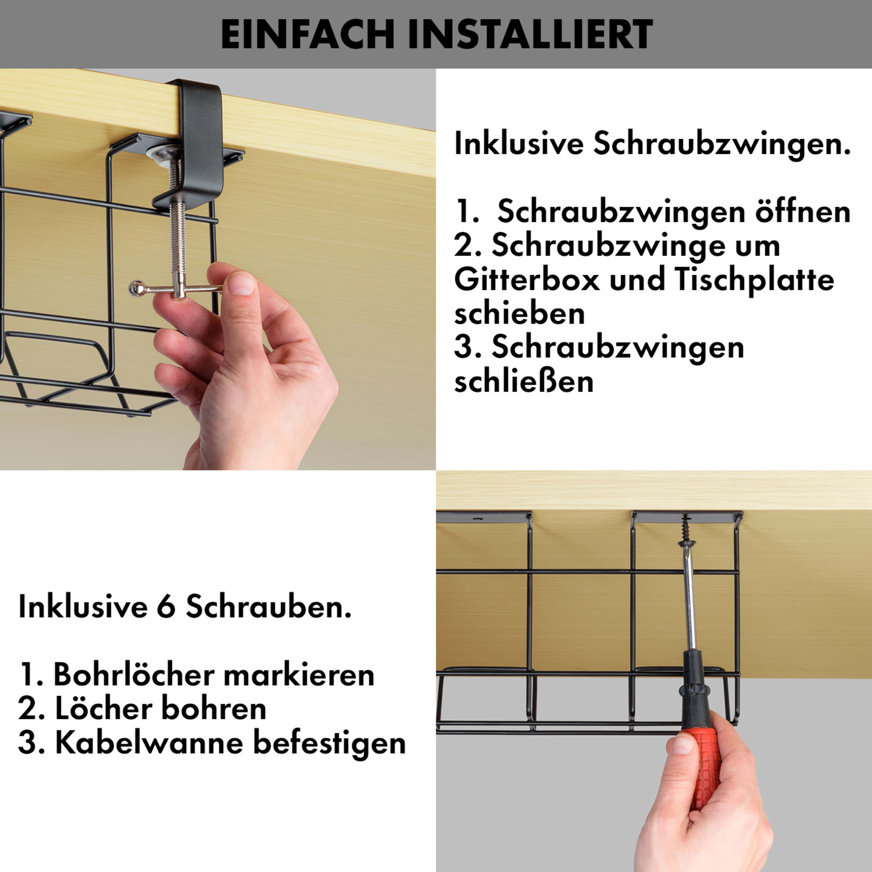 - praktische Kabelwanne im Doppelpack