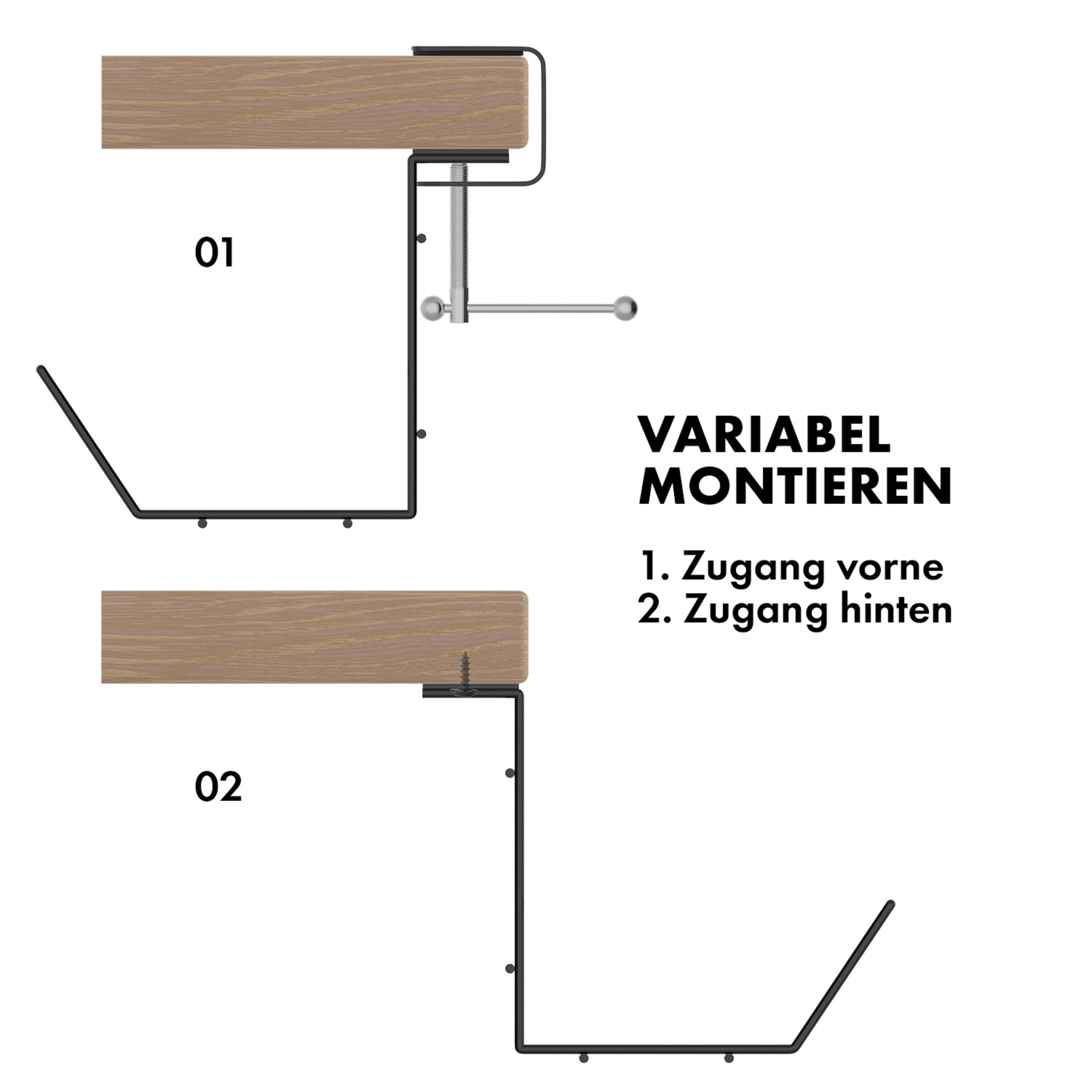 - je 2 moderne Schraubzwingen für Anbringung ohne Bohrlöcher