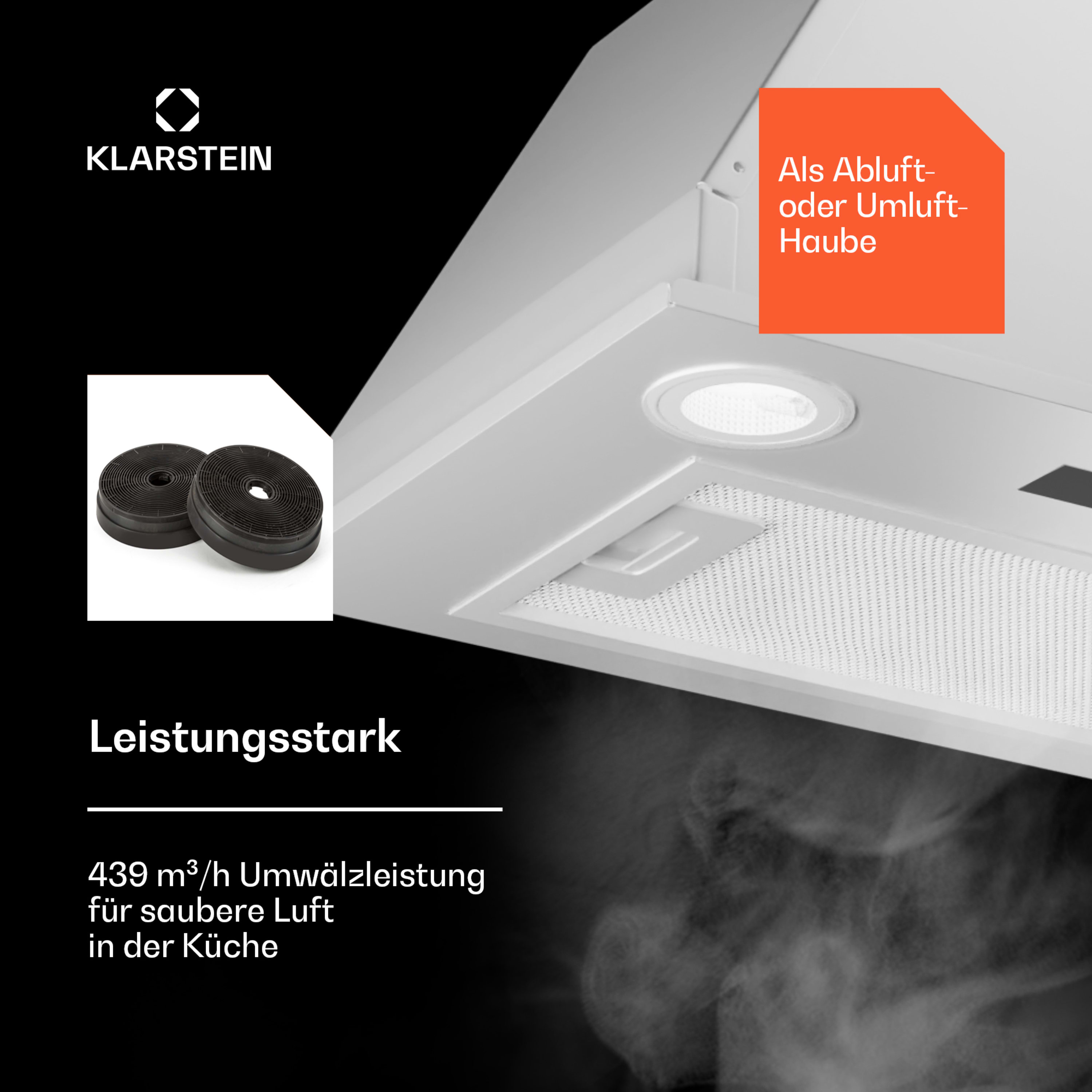 Beste Luft in der Küche: Die Klarstein Paolo 52 Unterbau-Dunstabzugshaube verschwindet randlos in der Küchenhänge. Von dort beseitigt sie schwungvoll Dampf und Dunst beim Kochen - mit bis zu 439 m³/h Abluftleistung in drei Geschwindigkeiten bei nur 44 dB auf niedrigster und 60 dB Betriebsgeräusch auf höchster Stufe. Per unkomplizierter Touch-Bediensektion kannst du Lüftung und Beleuchtung steuern und ein Abschalttimer lüftet auf Wunsch für 1 bis 9 Minuten nach und schaltet das Gerät danach ab.