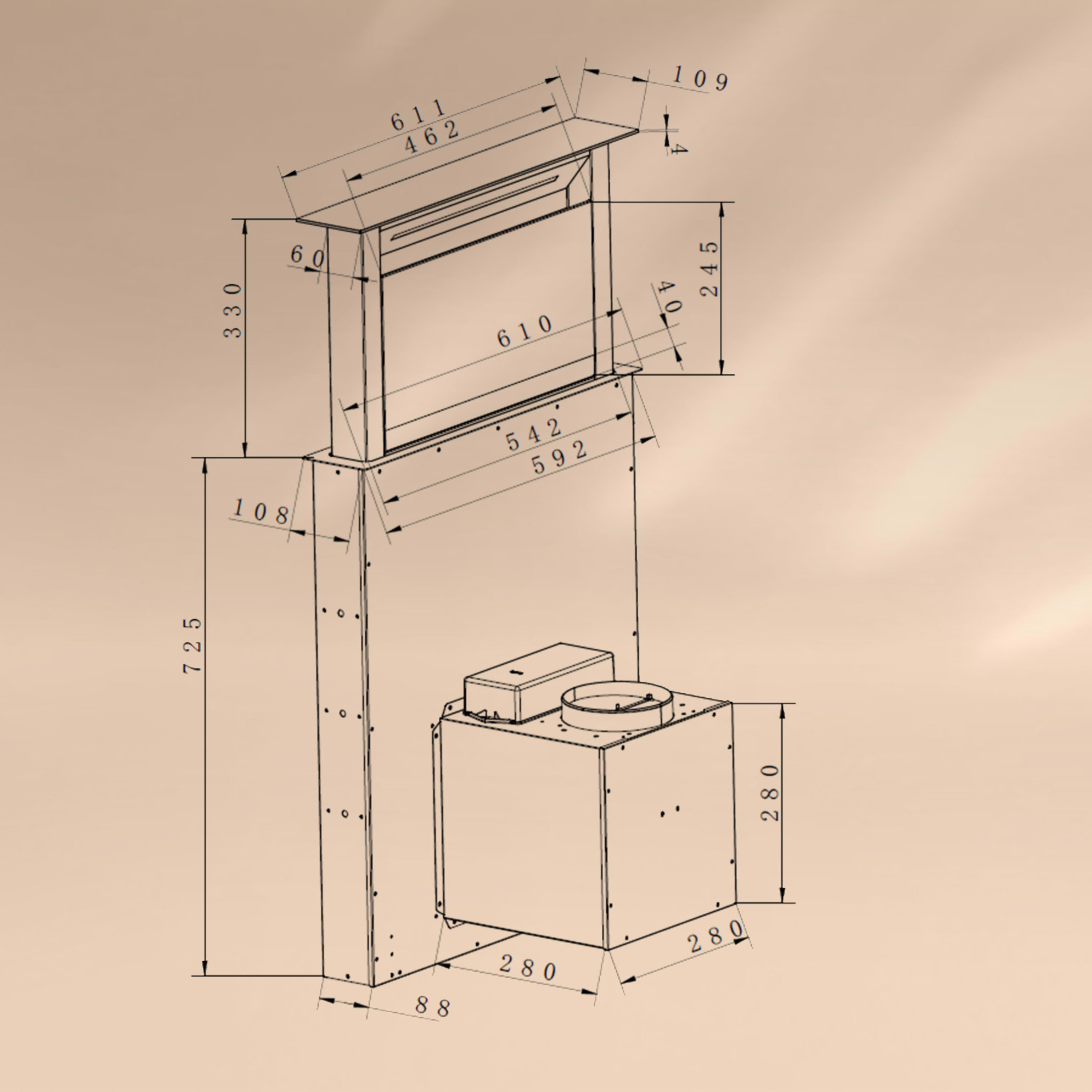 - Einbaumaß Schacht: 59,2 x 8,8 cm (BxT)