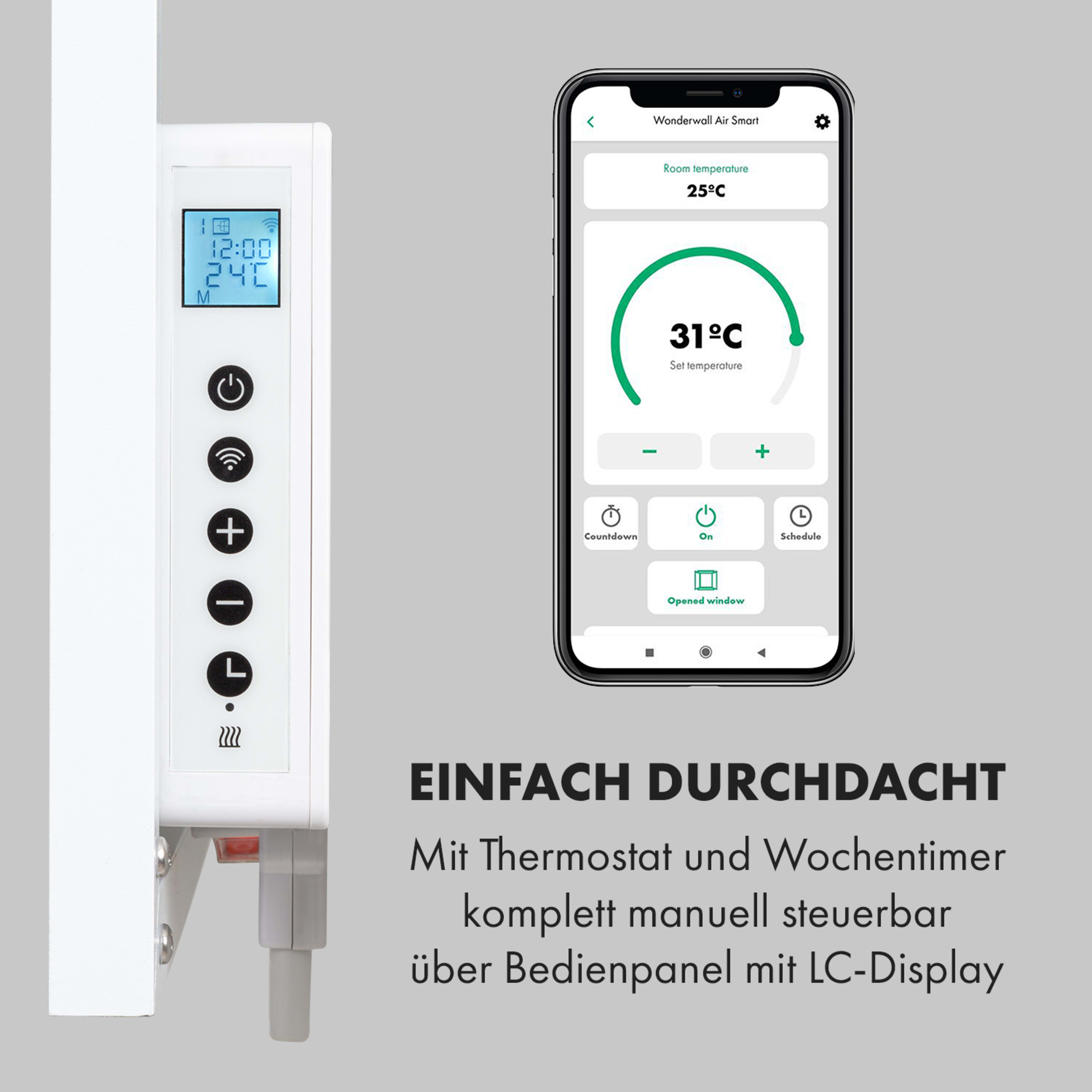 Mit der App zu Hause schon mal alles warm machen, einTraum! Die Wunderwelt von Klarstein ist einfach der Hit, nicht nur das sie schön aussieht mit dem tollen Motiv, sondern auch noch so funktional ist. Für uns von der Wärme her völlig ausreichend für 7-10m², und da mit der App steuerbar, wird auch nur soviel Energie verwendet wie nötig. Die Wunderwelt kommt mit Befestigung und Schablone zum Bohren daher, also auch die Montage ein Kinderspiel. Top Produkt, daher klare Kaufempfehlung.
