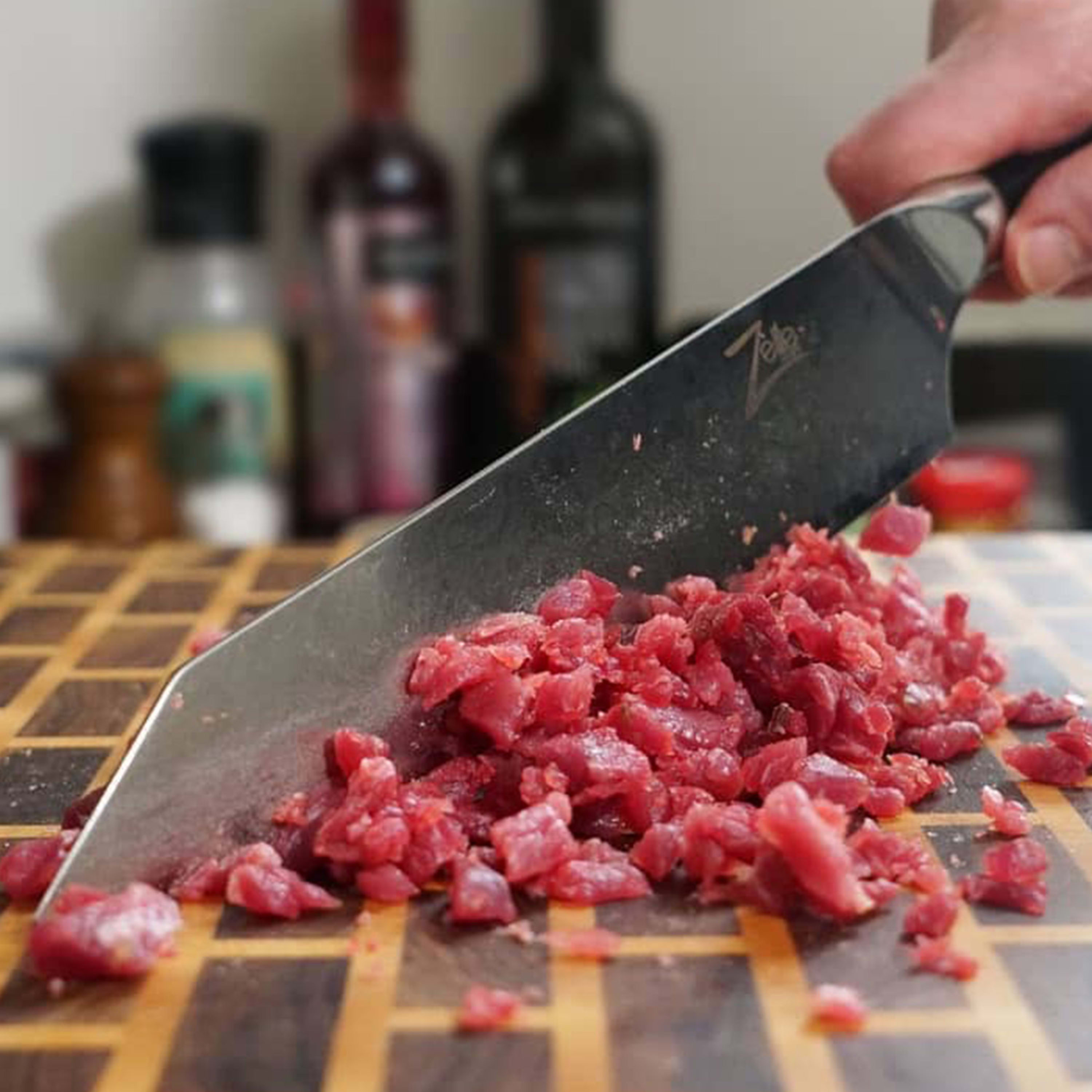I purchased this knife with mid expectations as to its performance with the company being a relatively young one. My thoughts are as below: Packaging: It arrived beautifully packaged in a presentation box with a magnetically sealed flap. When you open the box, the handle is first visible through a cutout in the high quality felt/foam, you lift the main piece to reveal the outline of the blade itself before finally lifting the last piece which covers the blade, all fitted into a shape cut black and red foam. 10/10 Presentation: Absolutely stunning, i'm not sure what else to say. The blade's pattern is beautiful, not something I have ever seen in a knife personally. You can see how the layers of steel begin to show as the blade narrows to its sharpest point. The handle is incredibly smooth with a lovely pattern running though it which is not visible in pictures of the knife. You can see the full tang running down the center and the center rivet is worth admiring. I'm personally not hugely keen on the size of the logo on the blade, it could do with being a fair bit smaller, or even removed and having the rivet showing that its a Zelite - would feel more exclusive. 9/10 Weight and balance: Excellent weight but not quite as well balanced as the Wusthof equivalent. A non issue in the practical side of things. 9/10 Sharpness: Without a doubt the sharpest knife i've ever used out of the box. You can feel that its extremely hard steel and i did the paper test with absolute ease. 10/10 Conclusion: This knife has exceeded my expectations by a huge amount. The company deserves more recognition than it currently has and I think I may just retire my Wusthofs and switch over to Zelite. An excellent product. A solid 10/10.