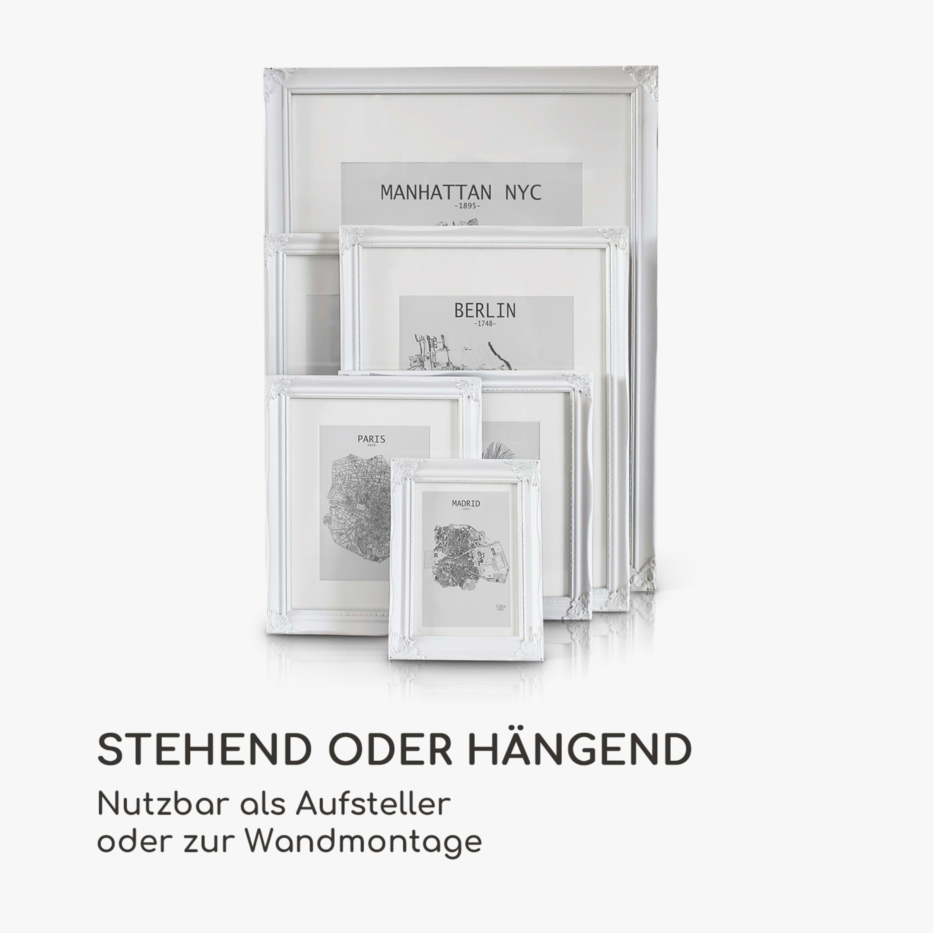 Rokoko-Design: Bilderrahmen aus Echtholz mit Kunstharzornamenten