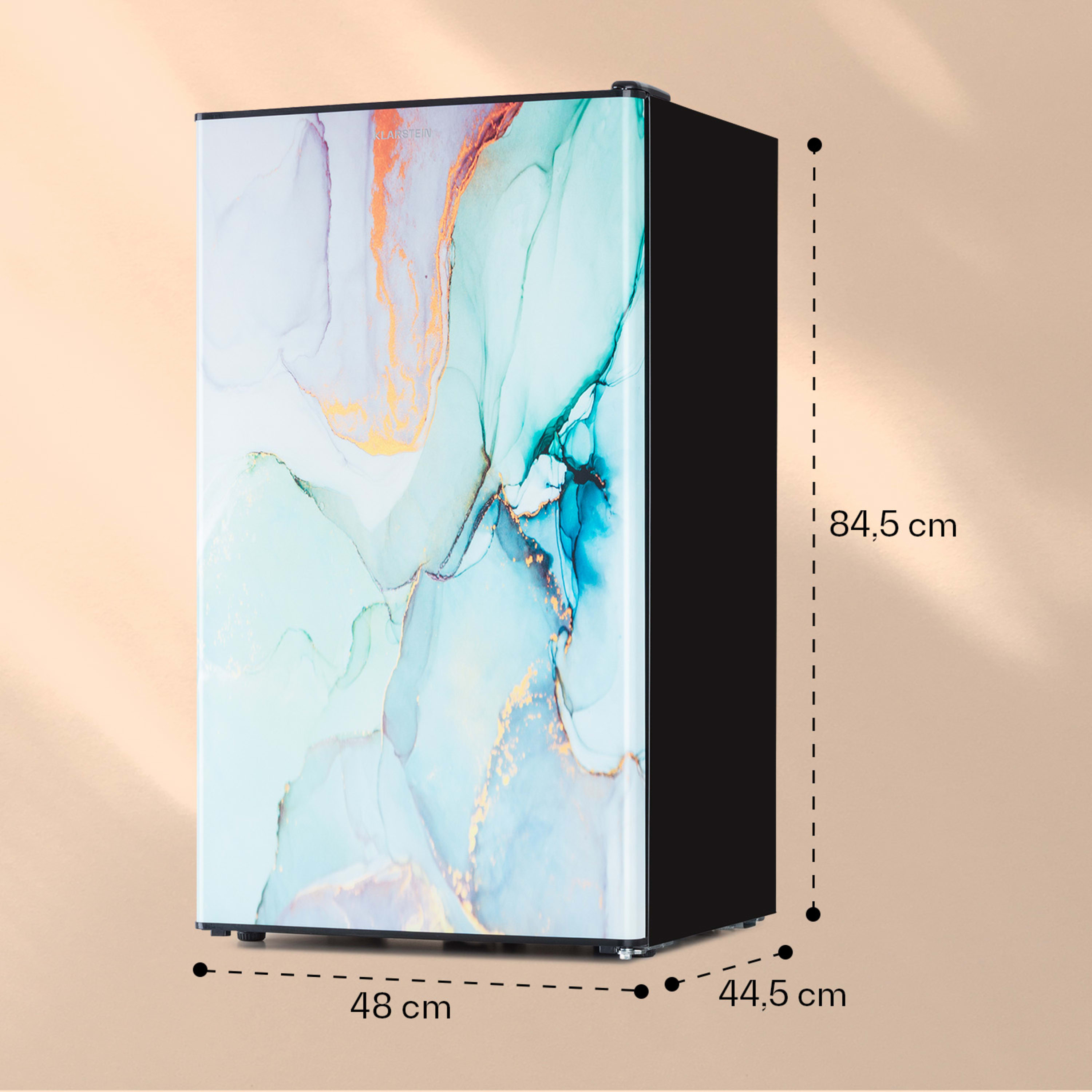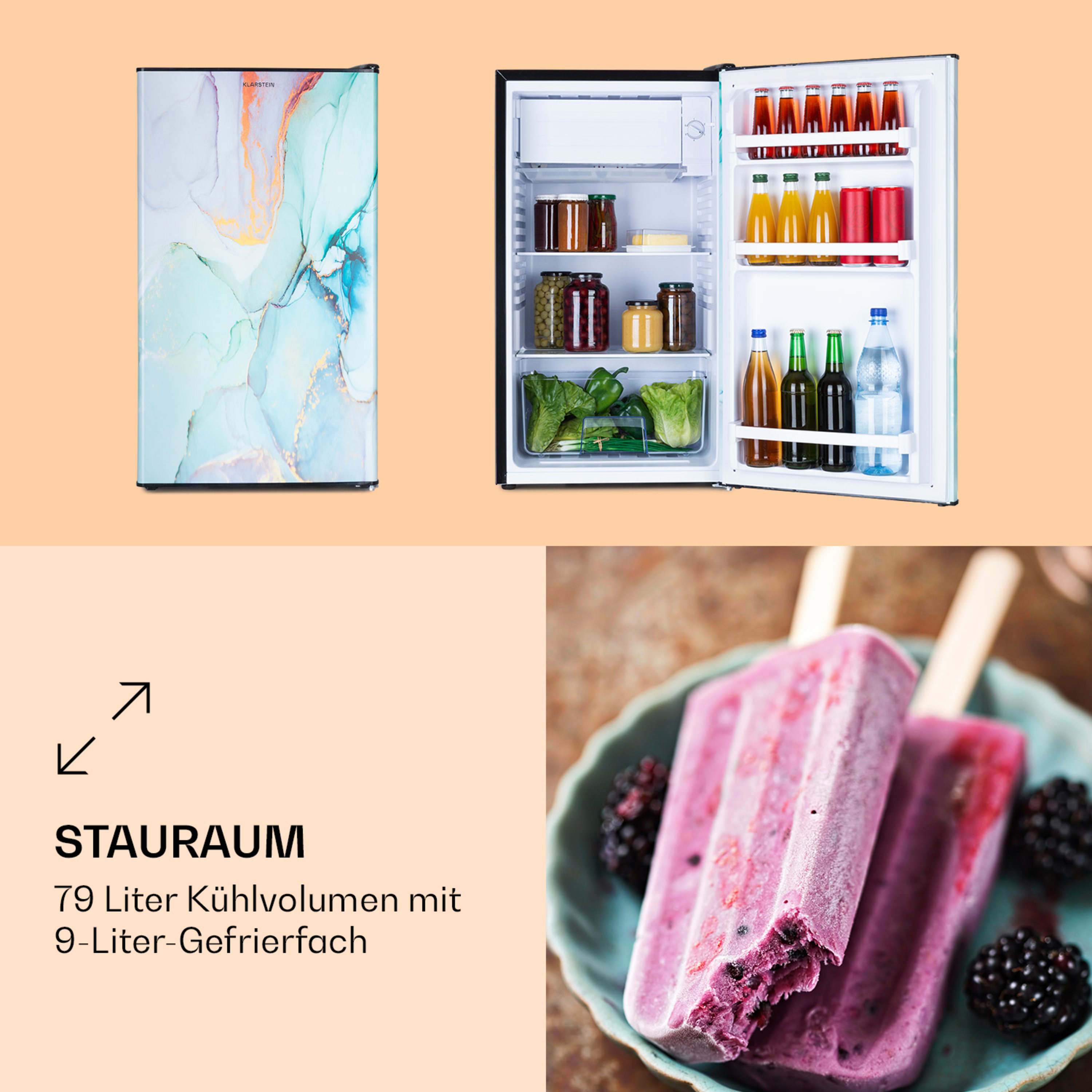 Kombinierte Frische für dein Zuhause. Die Klarstein CoolArt Kühl- und Gefrierkombination vereint den Platzvorteil eines Kühlschranks mit einem 9-Liter-Eisfach und einer Design-Front, die Farbe in deine Küche bringt. Damit ist sie mit ihren 79 Litern Frischevolumen der ideale Kühlschrank für Singles, in Gästezimmern oder im Gartenhäuschen. Dank ihres geräuscharmen Betriebs mit nur 41 dB stört sie weder deine Gedanken, noch deinen Schlaf.