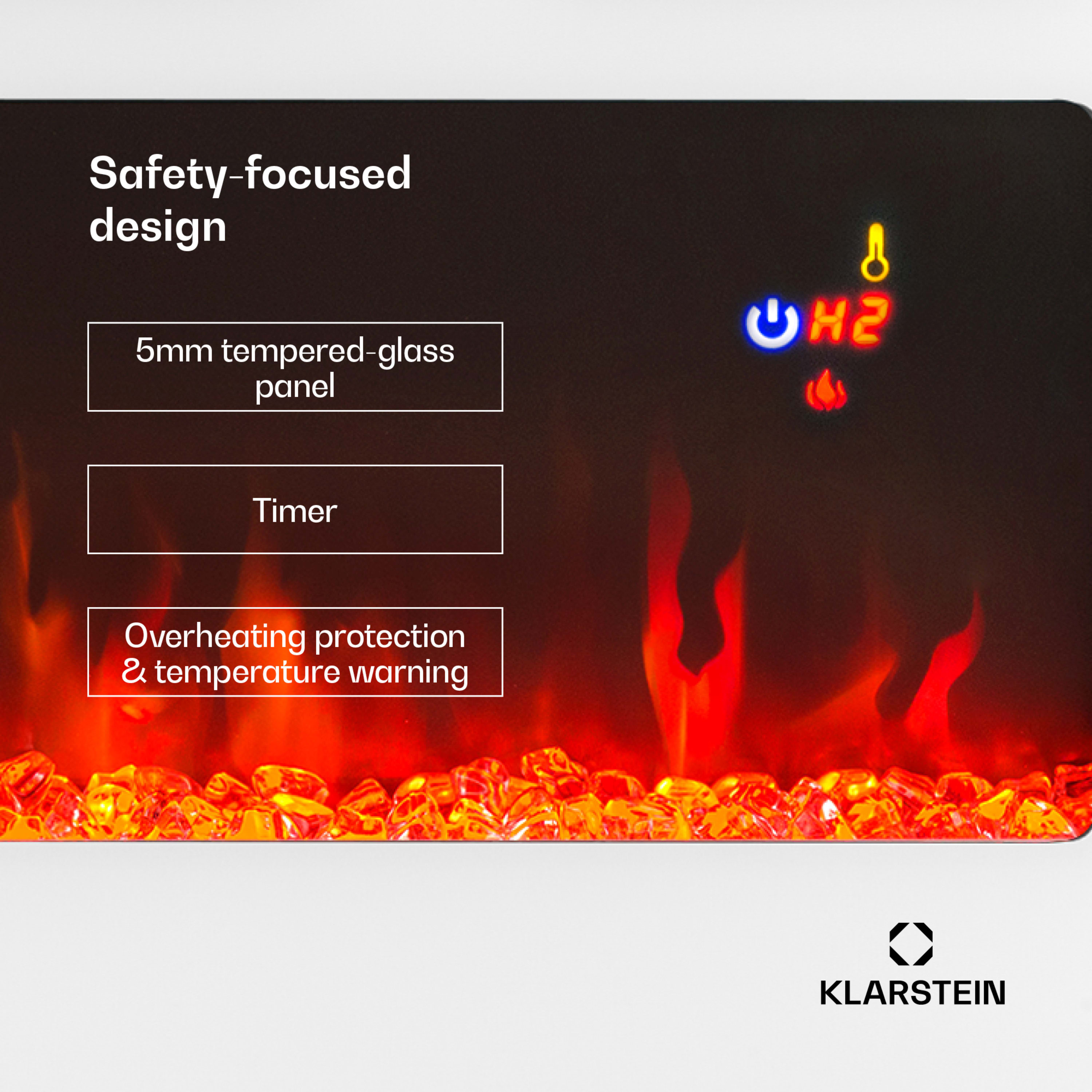 Funktionale Wanddekoration der etwas anderen Art: Mit dem Klarstein Galeras Elektrokamin bereicherst du dein Zuhause um einen wunderschönen und gleichzeitig wärmespendenden Wandkamin. Via Knopfdruck auf der praktischen Fernbedienung kannst du das Flammenspiel des Galeras in unterschiedlichen Farben und Helligkeiten erstrahlen lassen. Für die richtige Wohlfühltemperatur sorgt das integrierte Thermostat, das auf 16 bis 30 °C eingestellt werden kann. Dank des programmierbaren Wochentimers kannst du deine individuellen Heizzeiten festlegen und dich von wohliger Wärme und inspirierenden Farben begrüßen lassen. Durch sein schlichtes Design fügt sich der Galeras Wand- und Einbaukamin ideal in jedes Wohnambiente ein.