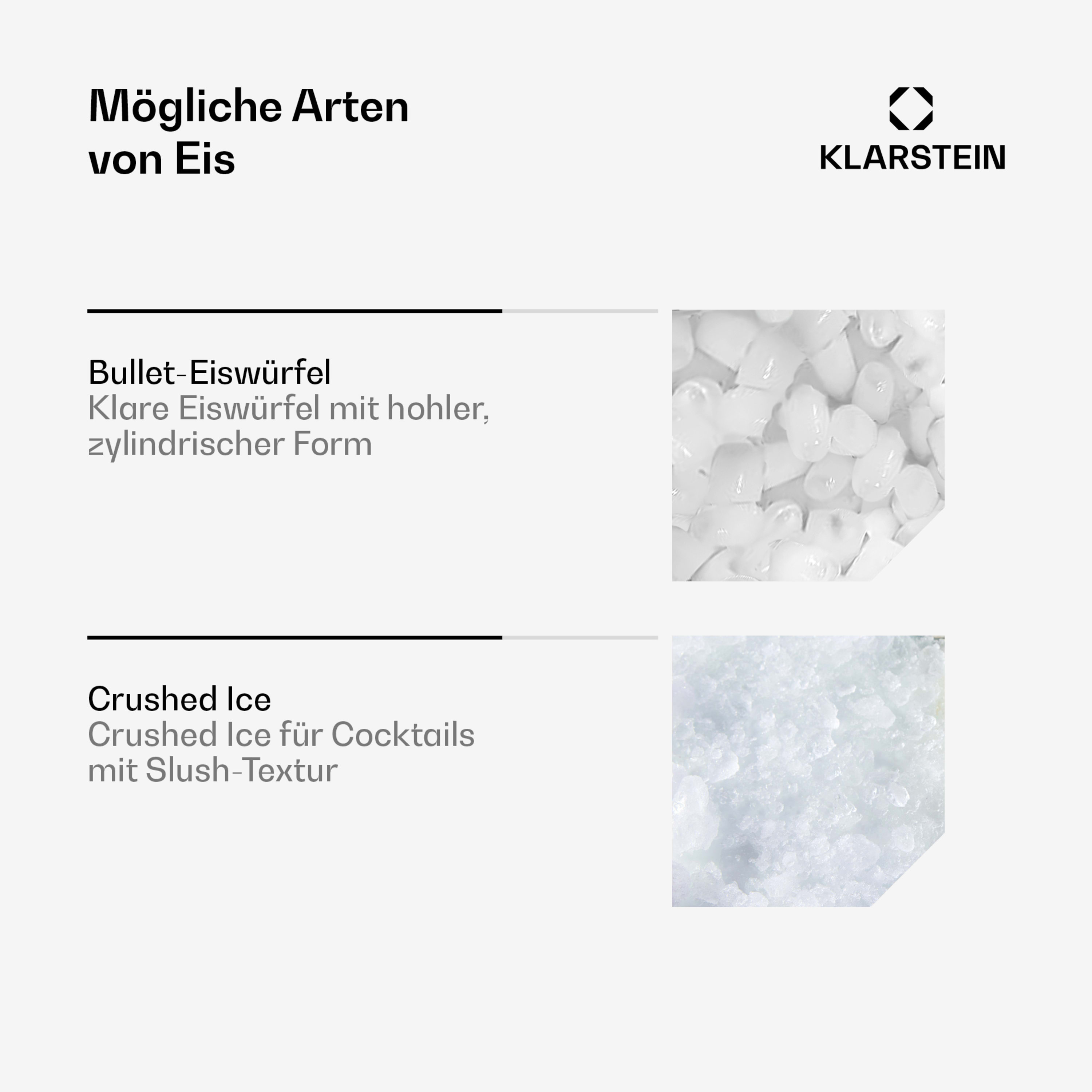 - Eiswürfelgröße: Bulleteis sowie geraspeltes Eis