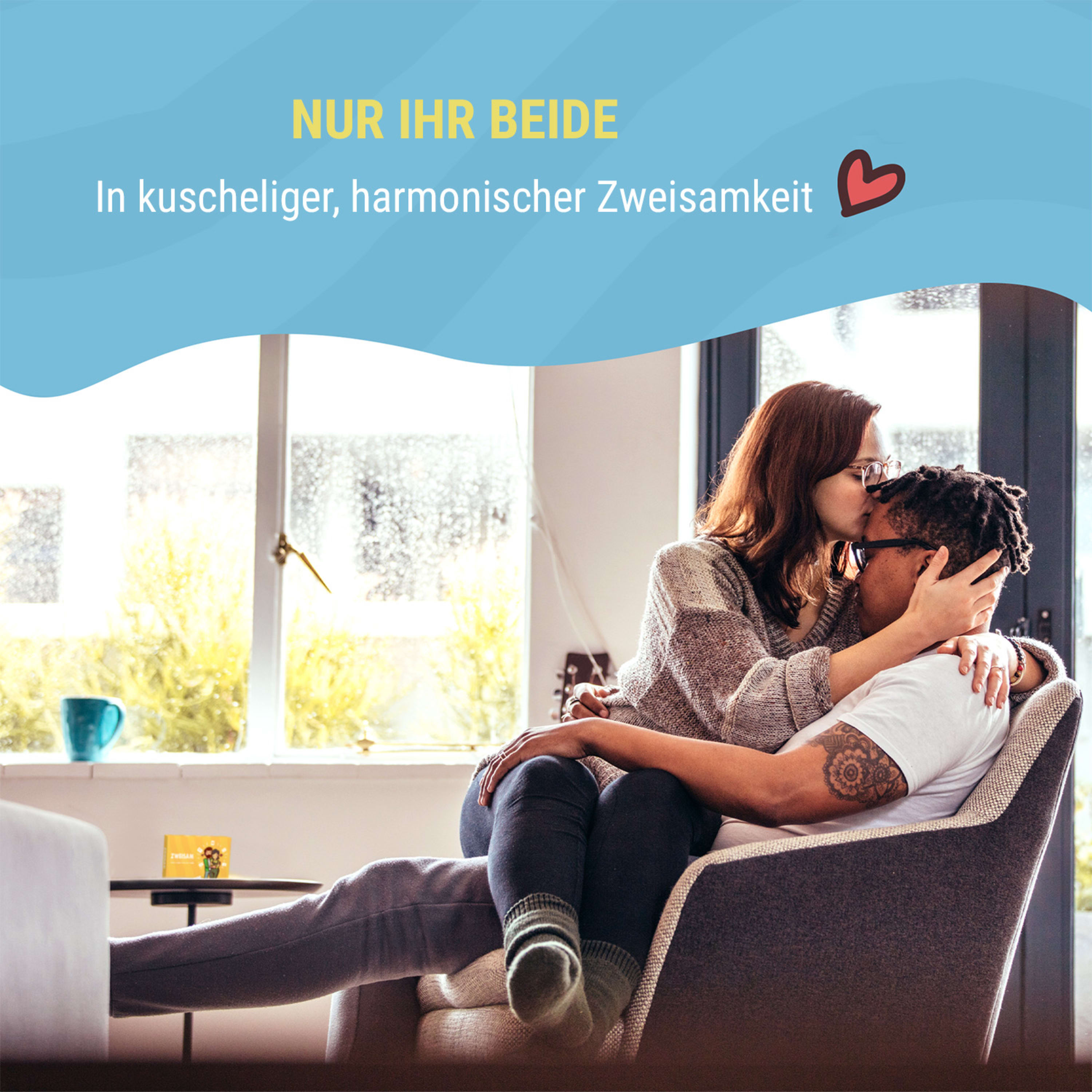 In harmonischer Zweisamkeit: Eine wunderschöne Idee ist es, das Zweisam Kartenspiel von Spielehelden in euren Alltag zu integrieren. Erschafft euch ein intimes Ritual, indem ihr zum Beispiel immer zu einem festen Zeitpunkt eine zufällige Karte zieht. Nehmt euch Zeit füreinander, genießt lustige Stunden und wachst zusammen, während ihr kuschelige Momente zu zweit erlebt.